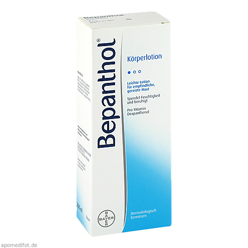 Die leichte Körperlotion von Bepanthenol spendet Feuchtigkeit und beruhigt vorallem empfindliche und gerzeite Haut.