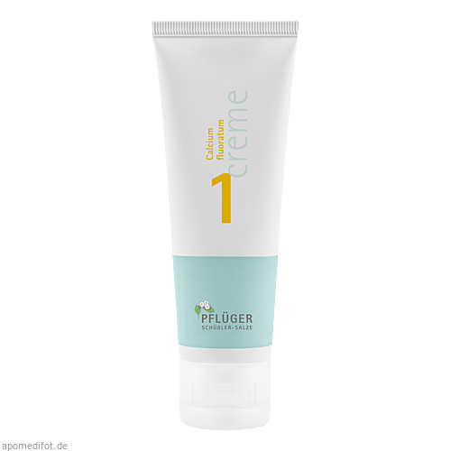 Biochemie Pflüger® Creme Nr. 1 Calcium fluoratum, Zusammensetzung: 10 g Creme enthalten: Wirkstoff: Calcium fluoratum Trit. D4 0,1 g. Sonstige Bestandteile: Benzylalkolhol, Cetylpalmitat (Ph. Eur.), Cetylstearylalkohol (Ph. Eur.), Natriumcitrat, Octyldodecanol (Ph. Eur.), Polysorbat 60, Propylenglycol, Sorbitanstearat, gereinigtes Wasser. Registriertes homöopathisches Arzneimittel, daher ohne Angabe einer therapeutischen Indikation. Gegenanzeigen: Überempfindlichkeit (Allergie) gegen den Wirkstoff oder einen der sonstigen Bestandteile, Anwendung im und am Auge, Anwendung auf den Schleimhäuten, Anwendung auf geschädigter Haut, Kinder unter 4 Jahren. Nebenwirkungen: keine bekannt. Creme enthält Propylenglycol und Cetylstearylalkohol. Packungsbeilage beachten. Zu Risiken und Nebenwirkungen lesen Sie die Packungsbeilage und fragen Sie Ihre Ärztin, Ihren Arzt oder in Ihrer Apotheke. Homöopathisches Laboratorium Alexander Pflüger GmbH & Co. KG · 33378 Rheda-Wiedenbrück · info@pflueger.de · www.pflueger.de