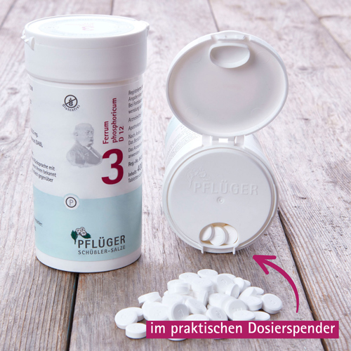 Vor allem Menschen, die Belastungssituationen ausgesetzt sind, sich in stressigen Lebensphasen befinden oder einen hohen Energiebedarf haben, profitieren vom Schüßler-Salz Nr. 3 von Pflüger. Auch in der Sommer- und Reisezeit ist Schüßler-Salz Nr. 3 ein zuverlässiger Begleiter. Ferrum phosphoricum ist in allen eisenverwertenden Zellen, im Darm, in der Leber, im Knochenmark und in den roten Blutkörperchen enthalten. Tipp für die kalte Jahreszeit: Die „Heiße 3“ als Heißgetränk für ungemütliche Herbst- und Wintertage.