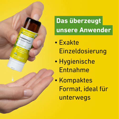 Nur von Pflüger gibt es Chamomilla im praktischen Globulispender. Dieser ermöglicht sowohl die hygienische Entnahme als auch eine exakte Dosierung. Unsere Verwender sind von der einfachen Anwendung begeistert und schätzen das kompakte Format auch für die Mitnahme unterwegs.