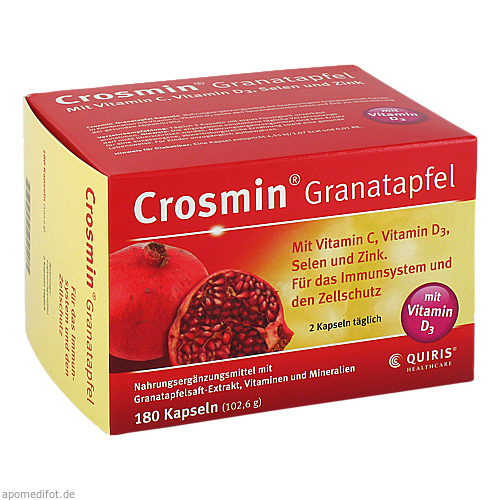Packungsgrößen: Crosmin® Granatapfel ist in Packungsgrößen mit 60, 120 und 180 Kapseln in allen Apotheken erhältlich.