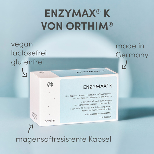 ENZYMAX® K ist kein Ersatz für eine ausgewogene und abwechslungsreiche Ernährung und eine gesunde Lebensweise. Kinder, Schwangere und stillende Mütter sollten dieses Produkt nicht nehmen, außer nach Rücksprache mit dem Arzt. Bei einer bekannten Überempfindlichkeit gegen einen der Bestandteile des Präparates soll ENZYMAX® K nicht zum Verzehr kommen. Bei einer Blutgerinnungsstörung oder der Einnahme von blutverdünnenden Arzneimitteln ist vor dem Verzehr von ENZYMAX® K eine Rücksprache mit Ihrem Arzt erforderlich.
