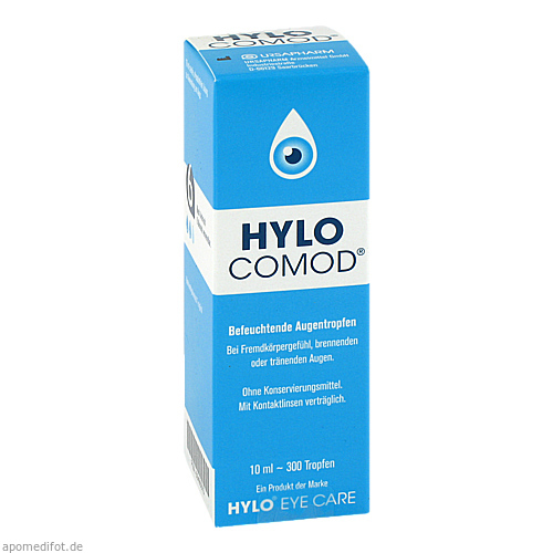 HYLO-COMOD® Augentropfen im COMOD®-System sind Kontaktlinsen verträglich, konservierungsmittel- und phosphatfrei, citratgepuffert. Außerdem sind die Augentropfen durch das einzigartige COMOD®-System von URSAPHARM enorm ergiebig.