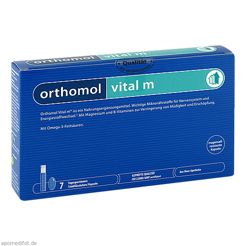Orthomol Vital m® ist ein Nahrungsergänzungsmittel mit Zucker und Süßungsmitteln. Wichtige Mikronährstoffe für Nervensystem und Energiestoffwechsel.