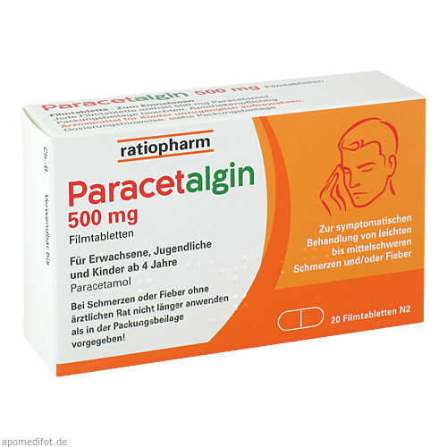 Paracetalgin 500 mg Filmtabletten Wirkstoff: Paracetamol. Anwendungsgebiete: Paracetalgin wird angewendet zur symptomatischen Behandlung von leichten bis mittelschweren Schmerzen und/oder Fieber. Apothekenpflichtig. Zu Risiken und Nebenwirkungen lesen Sie die Packungsbeilage und fragen Sie Ihren Arzt oder Apotheker. 7/20.