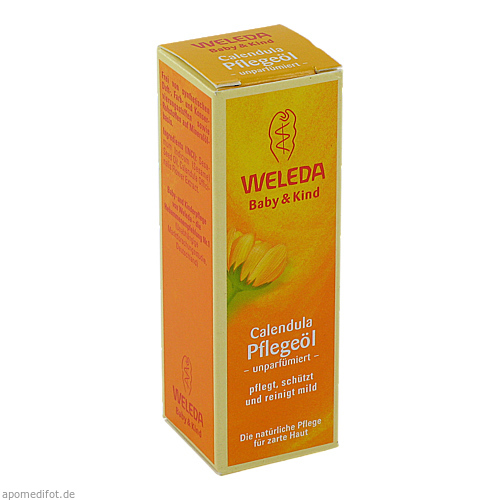Das unparfümierte Weleda Calendula Pflegeöl ist ideal für die tägliche Hautpflege und die milde Reinigung im Windelbereich. Mit einem Auszug aus Calendula werden Hautreizungen und Wundwerden vorgebeugt. Durch das enthaltene Sesamöl  wirkt das Calendula Pflegeöl von Weleda wohlig wärmend und ist ideal für die sanfte Babymassage geeignet - einfach eine kleine Menge Öl auf den Handflächen verteilen und mit kreisenden Bewegungen in die Babyhaut einmassieren.
